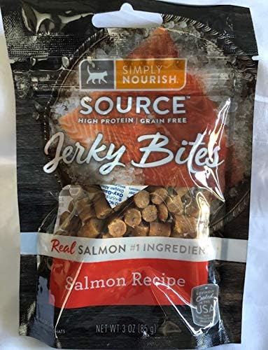 Amazon Com Simply Nourish 1 Grain Free Jerky Bites Salmon Recipe For Cats 1 Net Wt 3 Oz Bag Pet Supplies